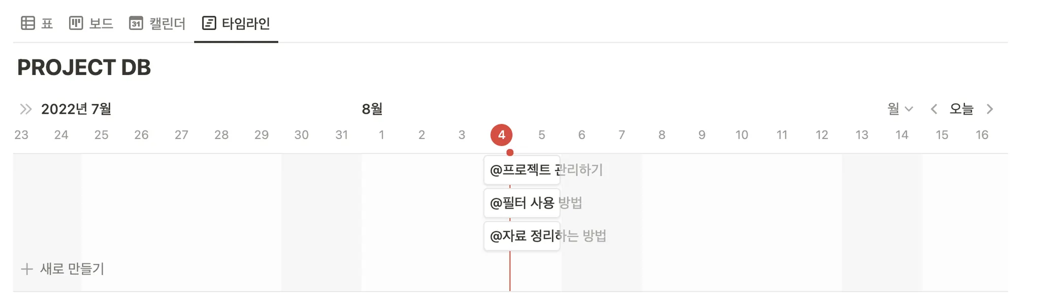 진행 기간이라는 날짜 속성을 넣었으면 캘린더 보기도 만들어보세요. 진행 기간을 달력 형태로 파악할 수 있습니다.
