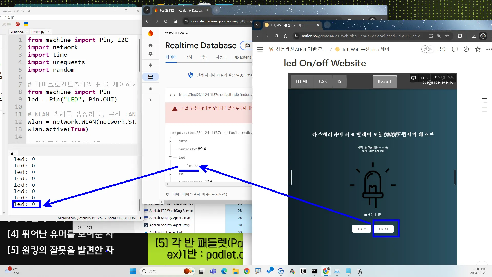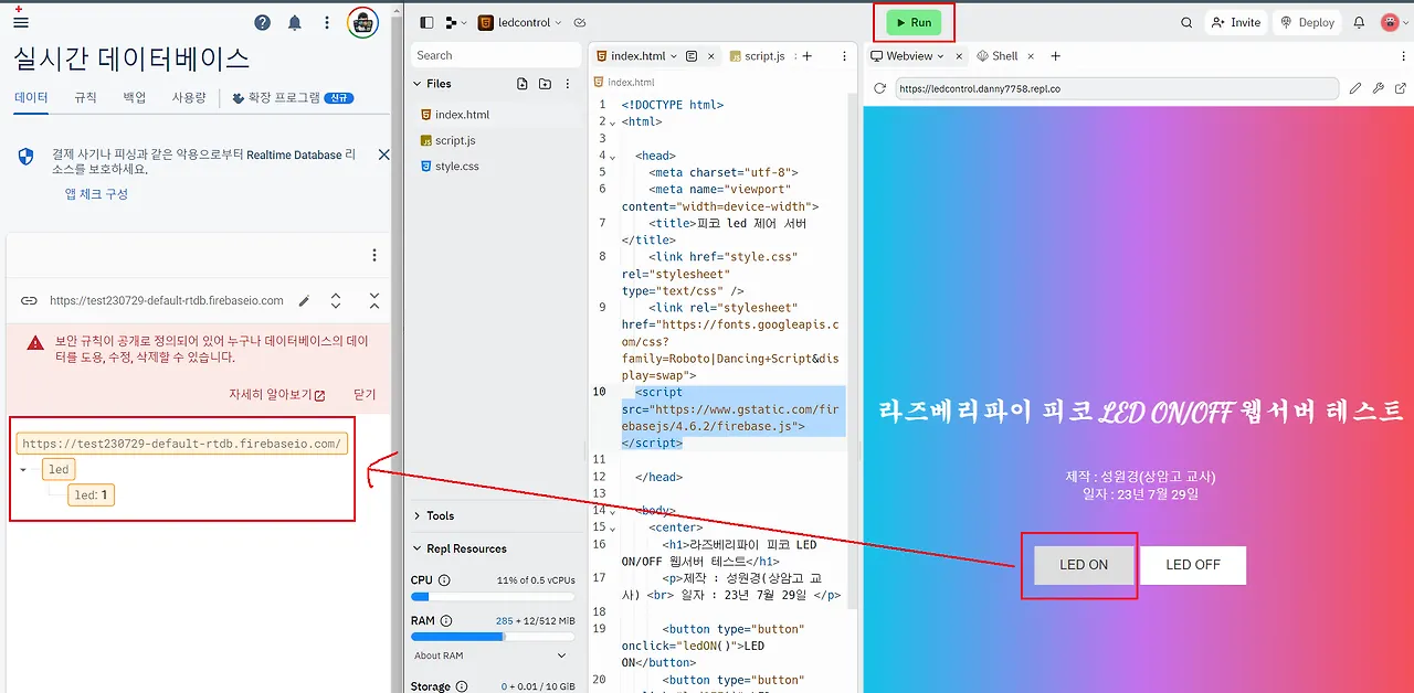 Realtime database 통신 pico 제어(Iot, Internet of Things)