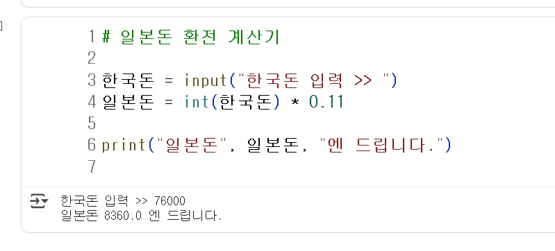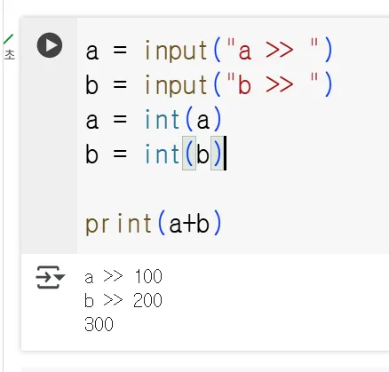 input()함수로 받은 데이터는 문자 데이터 이기 때문에 숫자 데이터로 변환하여 계산해야한다.