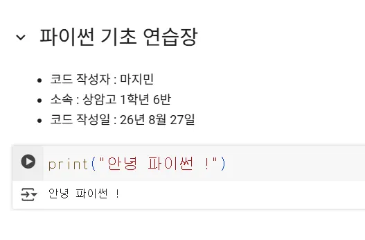 name이란 변수에 input() 함수로 이름을 넣어서 print()함수에서 변수의 데이터를 출력하였다.