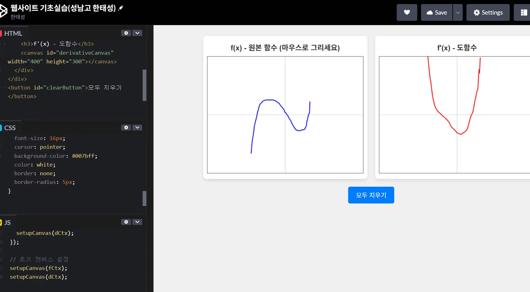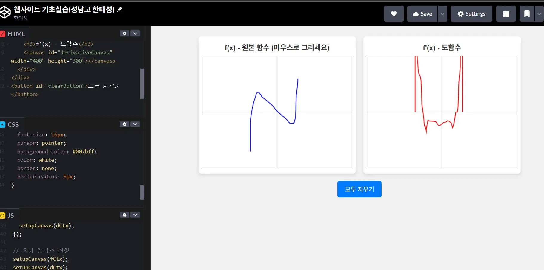 웹사이트 구상: 고등학교때 배우는 수학2 의 미분 개념을 활용해서 그래프를 그렸을 때 그에 맞는 도함수를 그려주는 웹사이트를 제작했다.