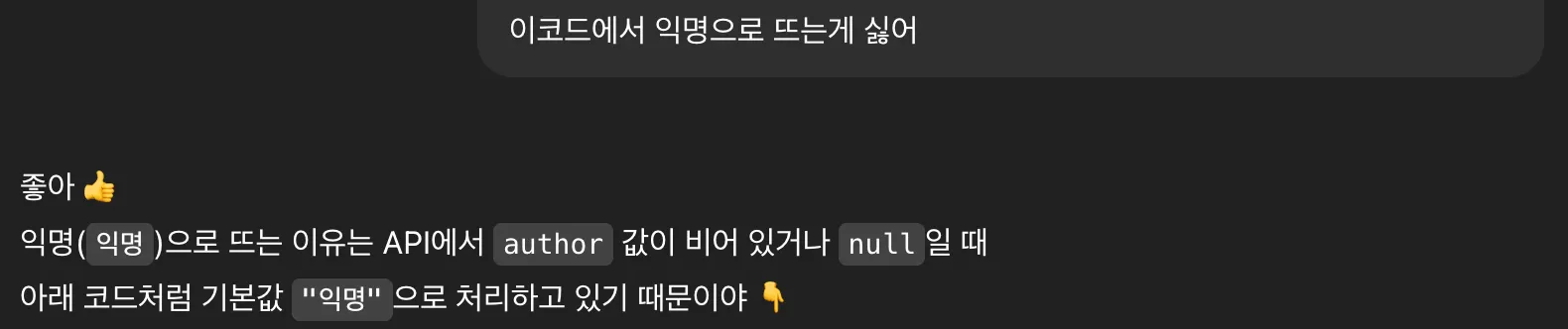 작동을 시켜보니 익명으로 뜨는 것이 아쉬워서 고쳐보기로 했다