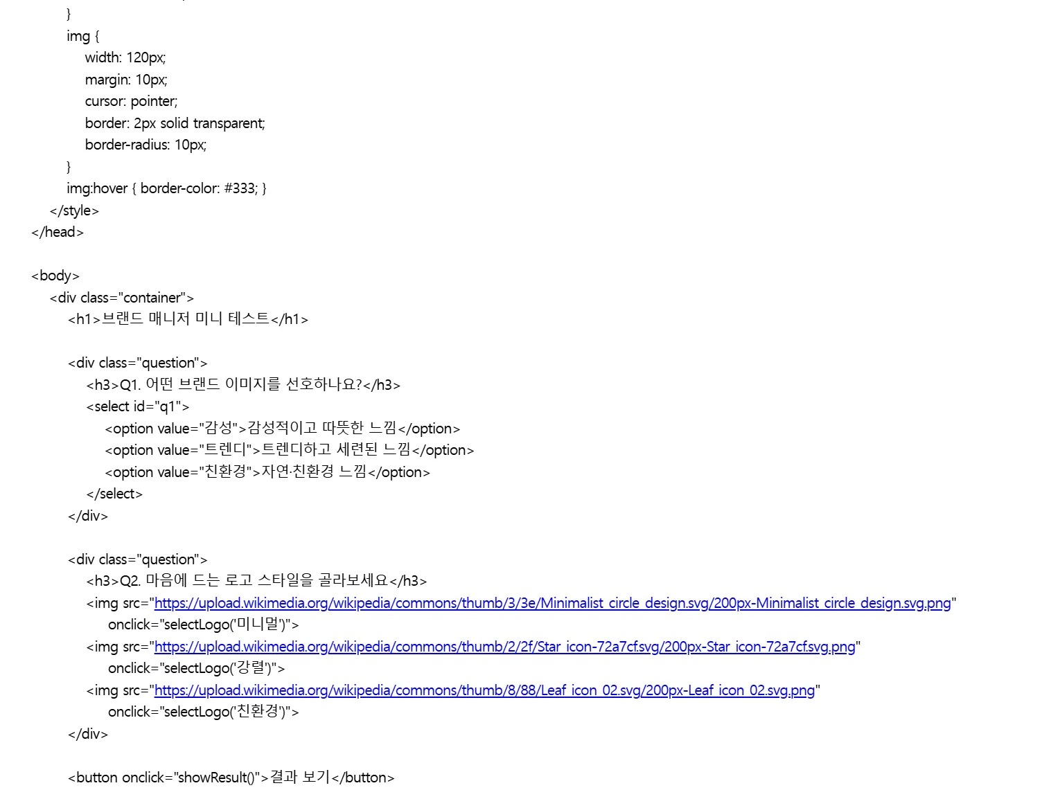 간단한 설명: 이 웹사이트는 브랜드 매니저의 역할을 체험해볼 수 있는 미니 테스트이다. 사용자가 선호하는 브랜드 이미지와 로고 스타일을 선택하면 그에 맞는 브랜드 매니저 유형을 알려준다. 브랜드 콘셉트 판단과 디자인 취향을 파악하는 과정을 경험해볼 수 있는 웹사이트이다.