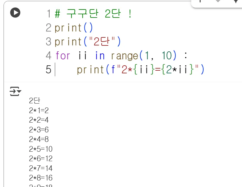 반복문을 2중을 넣어서 구구단을 완성하였다.