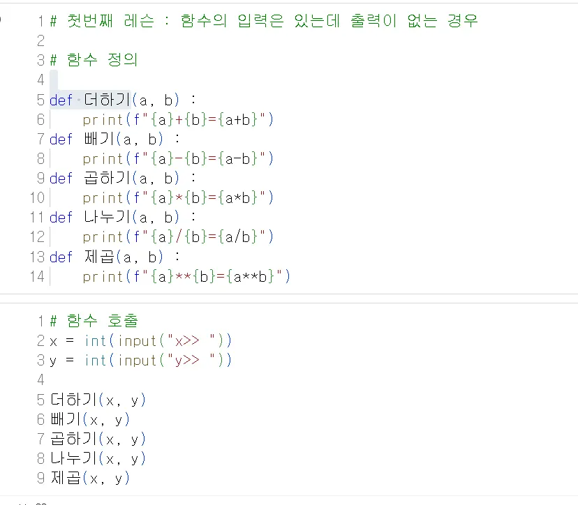함수를 정의하고 코드 동작을 시켜도 아무일도 일어나지 않는다.