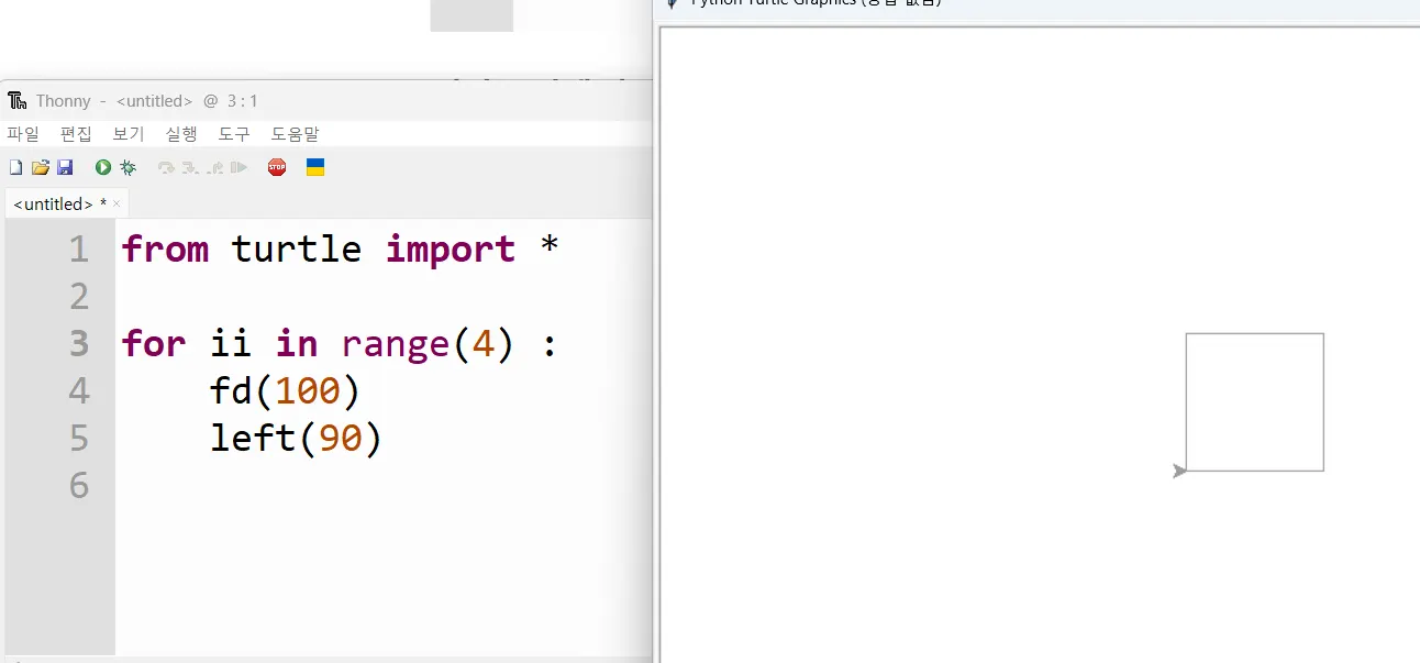pendown() 또는 pd(): 펜을 내려서 그리기