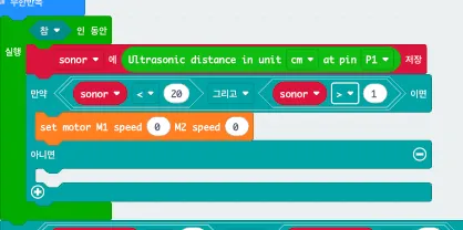 그리고 앞에 장애물이 있으면 긴급제동 되게 만드는 걸 추가했는데, 단순히 멈추는 게 아니라 뒤로 살짝 빠지는 기능까지 넣으니까 더 현실적인 기술 같아서 만족스러웠다. 그냥 속도 조절만 하는 자동차가 아니라, 실제 상황까지 고려하는 스마트한 자동차를 내가 직접 만들었다는 생각이 들어서 기분이 좋았다.