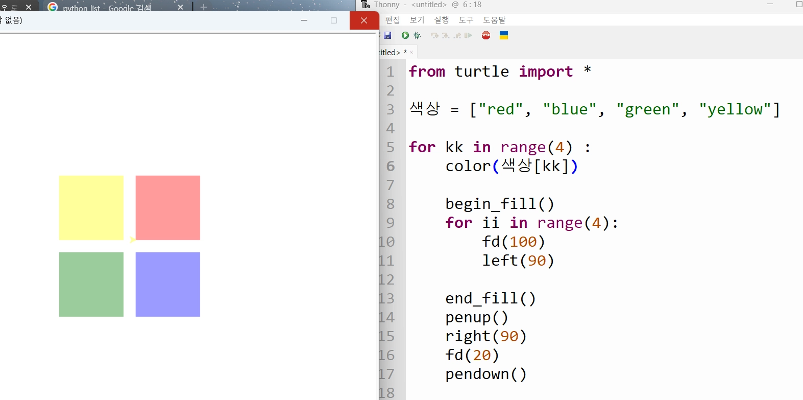 done() 또는 mainloop(): 그리기가 완료된 후 창이 닫히지 않도록 유지