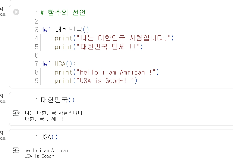 함수를 정의한 뒤에는 함수 이름을 써서 함수를 사용할수 있다. 이것을 함수의 콜링이라고 한다.