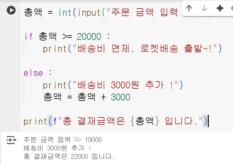 마지막 총액 출력 코드는 이프 엘스 조건에 상관없이 동작해야한다.