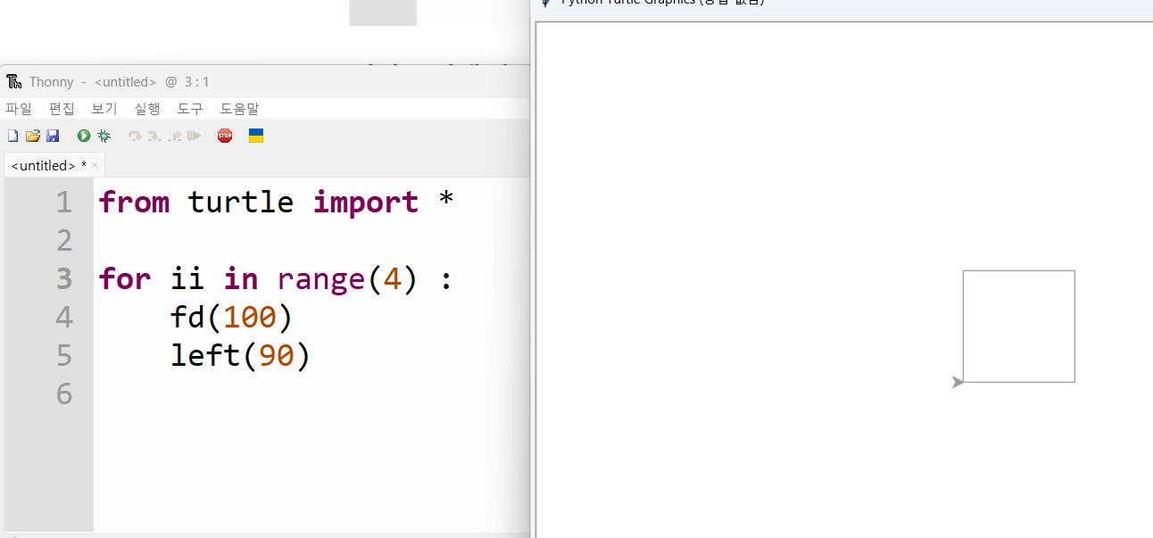 pendown() 또는 pd(): 펜을 내려서 그리기