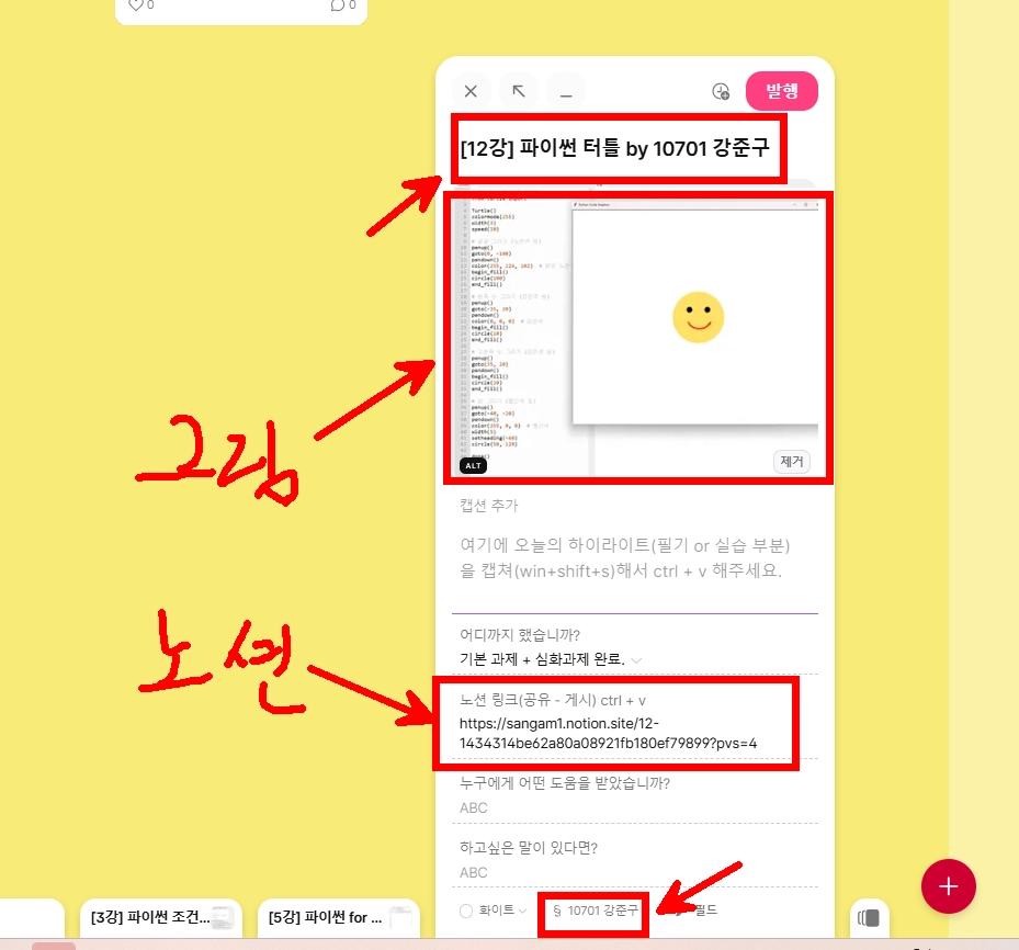 패들렛에는 아래 과제 제출 자료 참고하여 그림과 노션링크를 제출한다.